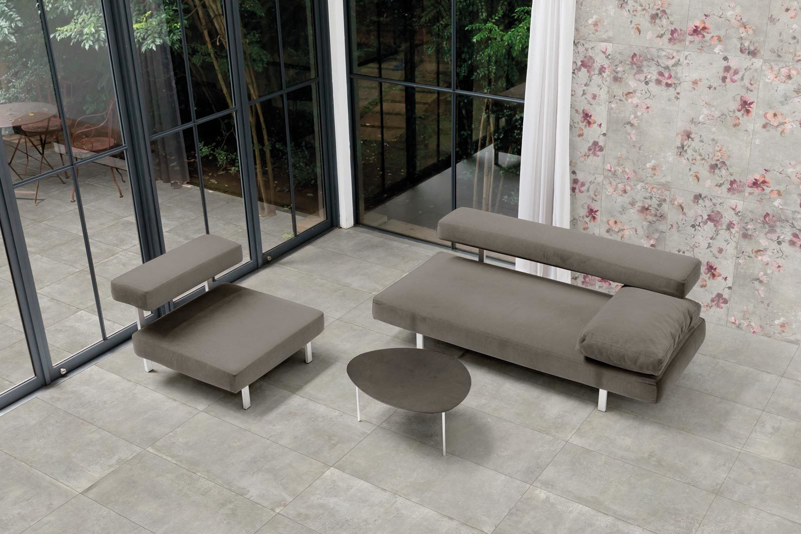 Una look cemento dai colori tono su tono e dalle superfici morbidamente lavorate. I grandi formati e la ricca grafica disponibili in quattro colori, richiamano le superifci continue a grande campitura, come resine ed intonaci murali e rendono questa collezione ideale in ambienti residenziali e commerciali.