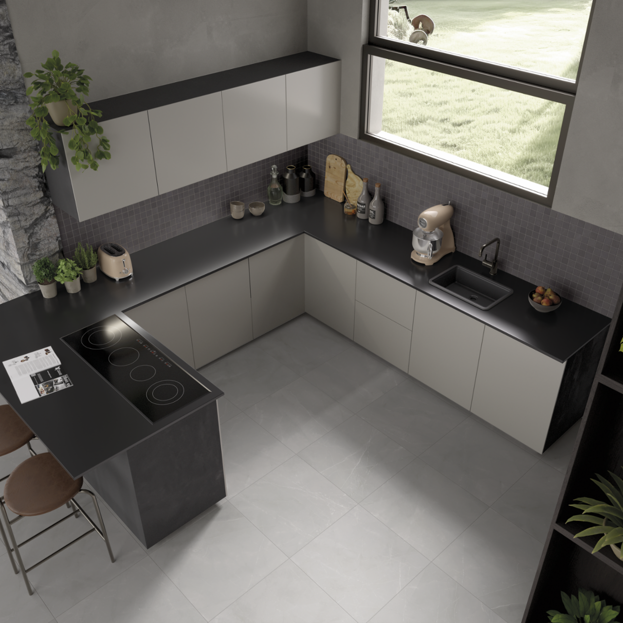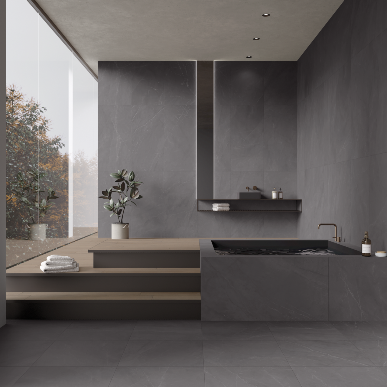 Grazie all'utilizzo delle ultime tecnologie di settore, nasce il progetto "Walk" che sviluppa la superficie 3d integrando in essa gli effetti materici che ne esaltano maggiormente struttura ed eleganza. Questo nuovo progetto viene enfatizzato ancor di più dalle 2 superfici disponibili, 3d e Rigatino, quest'ultima una leggera struttura che permette l'effetto marmorizzato-anticato.